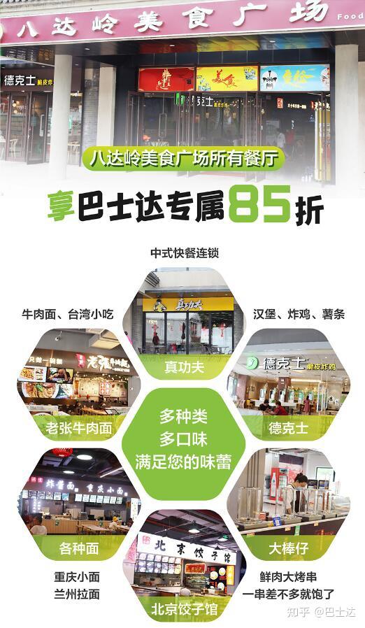 3、用餐:八达岭长城景区游玩需要一天的时间,所以午餐就需要游客自行解决。首先建议游客可以选择带一些面包零食充饥,其次也可以考虑去八达岭美食广场用餐,如果是选择巴士达直通车的客人,可以关注巴士达v x公主号【巴士达】,回复 “餐厅折扣”,即可获得巴士达客人专属餐厅折扣券哦。