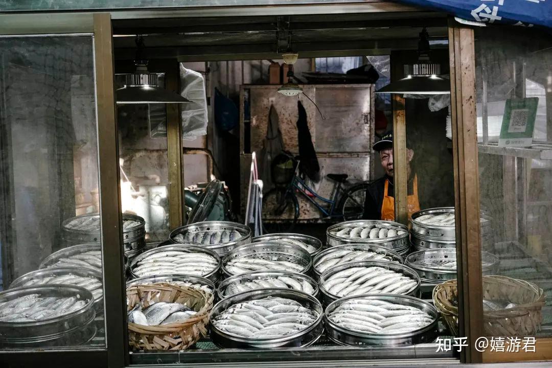 鱼饭的摊位也好看,在一筐筐竹篓里,鱼肉按逆时针被码放得整整齐齐。鱼身紧致富有弹性,泛着好看的光泽。